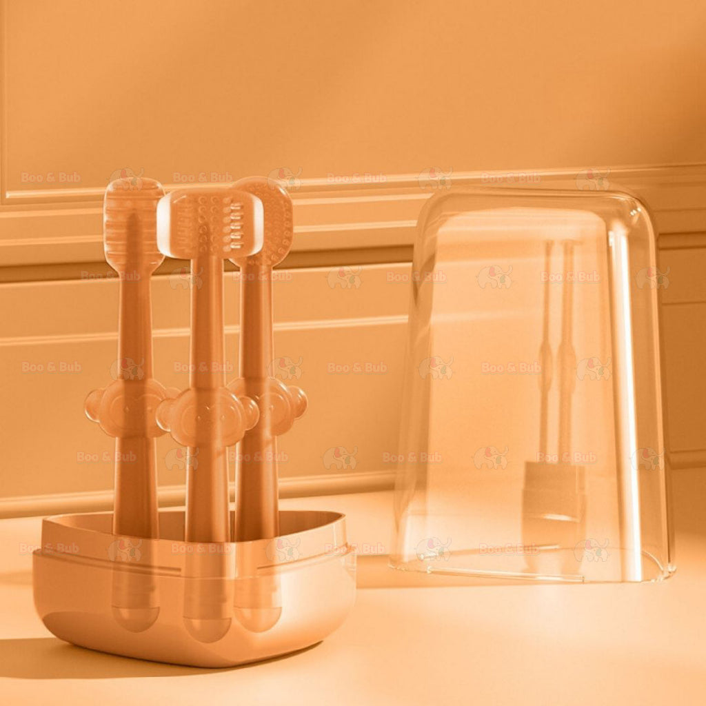 Boo & Bub 3 in 1 Silicone Baby Toothbrush Cup set Infant Oral Care Tongue Cleaner Baby Soft Toothbrush berus gigi baby