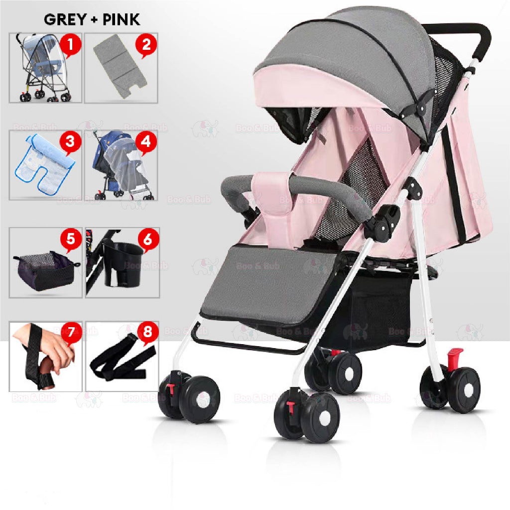 Boo&Bub Multifunction light weight foldable baby stroller for New Born Baby cabin size kereta tolak bayi sorong bayi