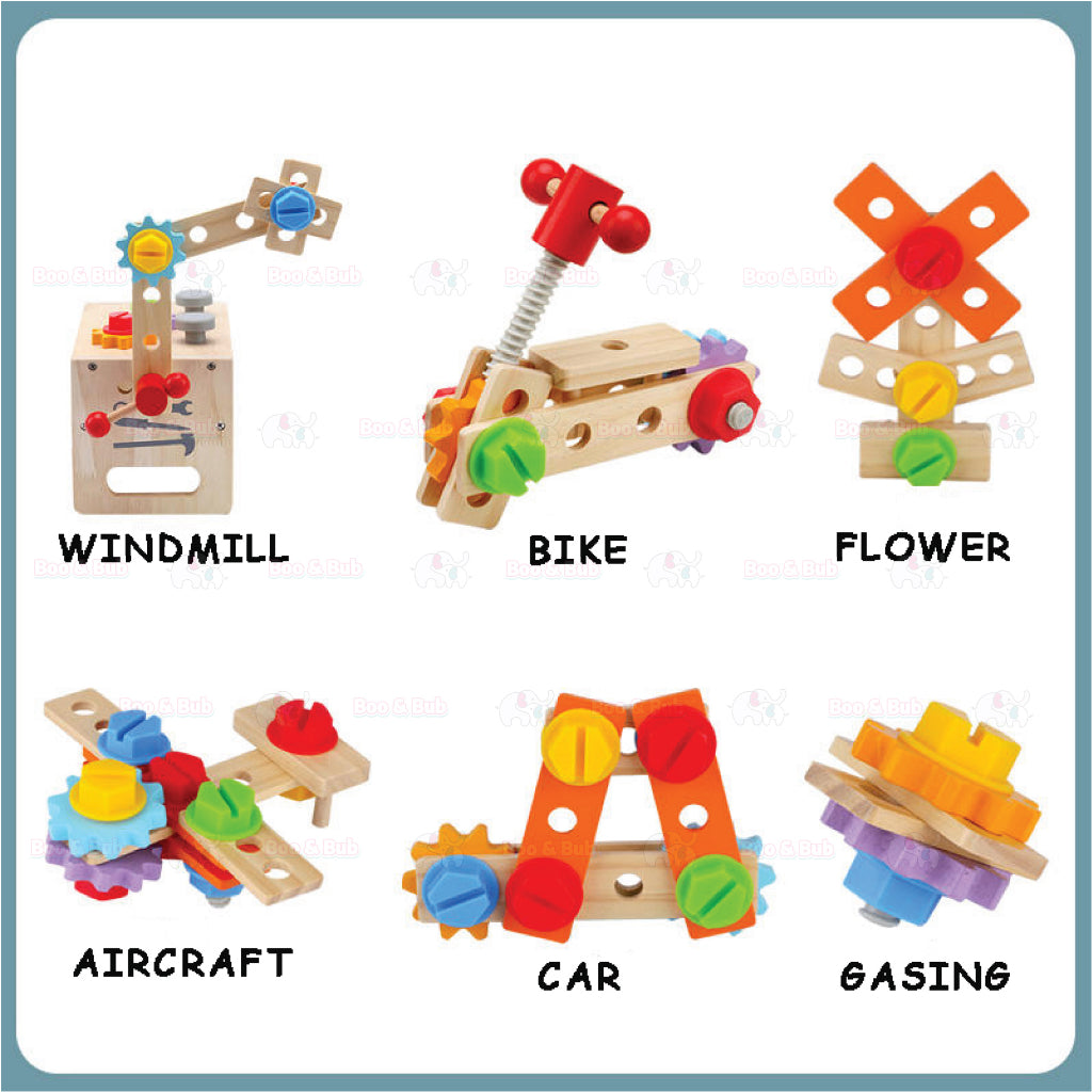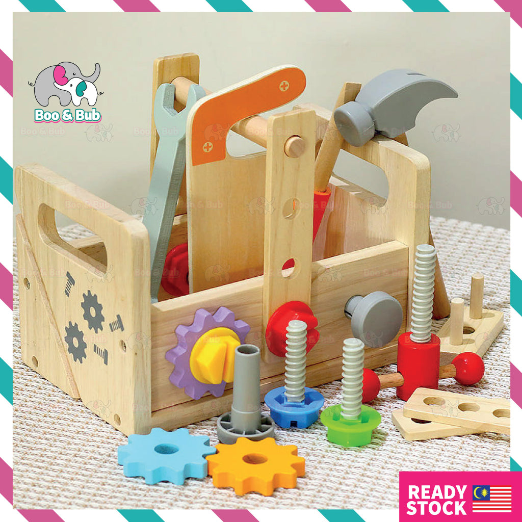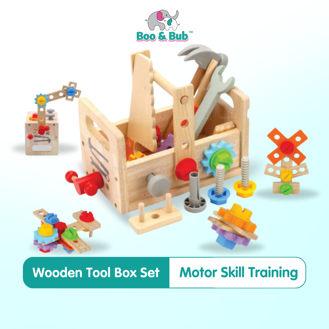 Boo&Bub Wooden Tool Set for Toddlers | Pretend Play Learning Toys Tool Set Construction Accessories Gift