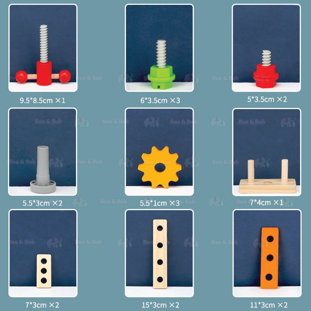 ✨ Wood tool toys set : Solid wood tools set includes a sturdy, durable wooden board toy that provides long-lasting strength and durability.