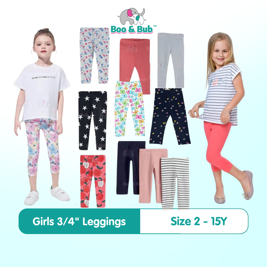 Assorted Girl 3/4 Cropped Legging (2Y~15Y) 100% Cotton Spandex Random Design capri | Legging Budak Baby Perempuan