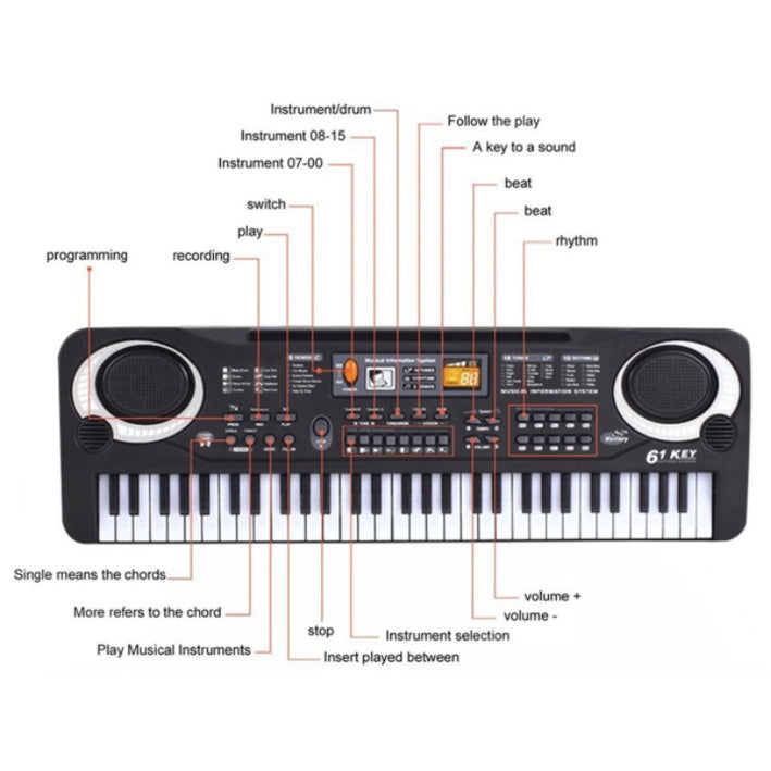 61 Keys Digital Music Electronic Keyboard | Electric Piano Standard Keyboard Microphone Early Learning Kid gift