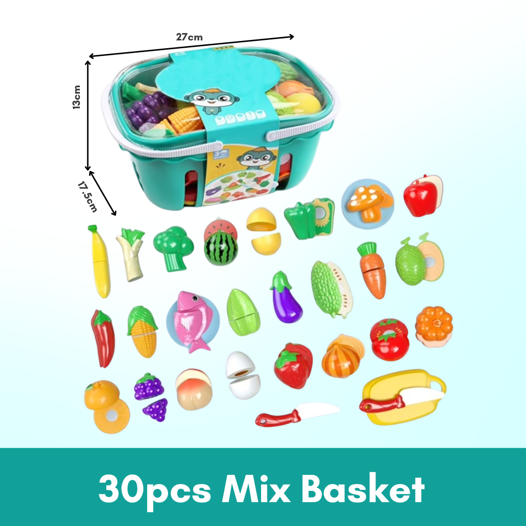 - Comes with a plastic knife for children to cut the toys of fruit and vegetables