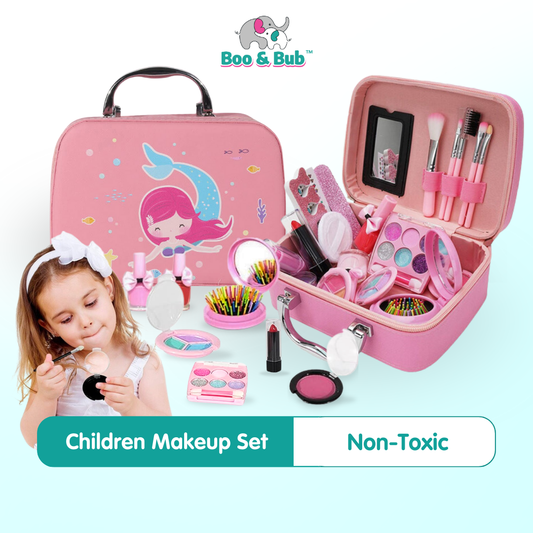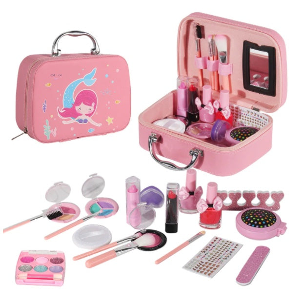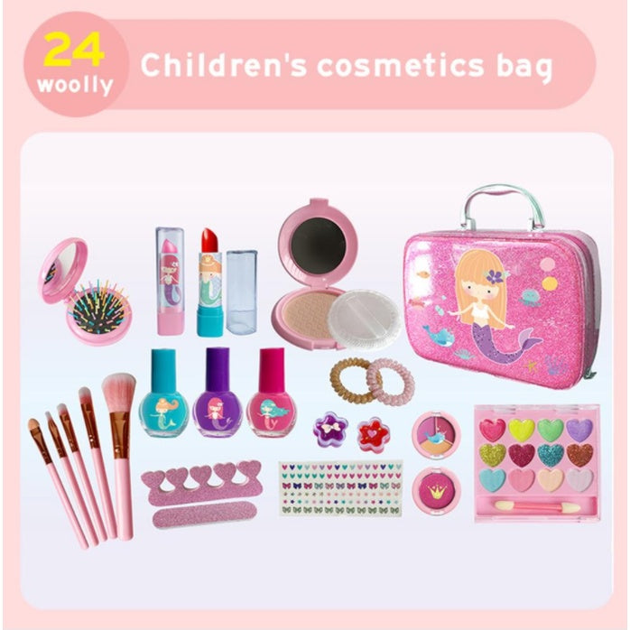 Children Makeup Set | Safe Baby Girls Pretend Play Toys Princess Dress Up Cosmetic Bag Make Up Kit Gift For Kid