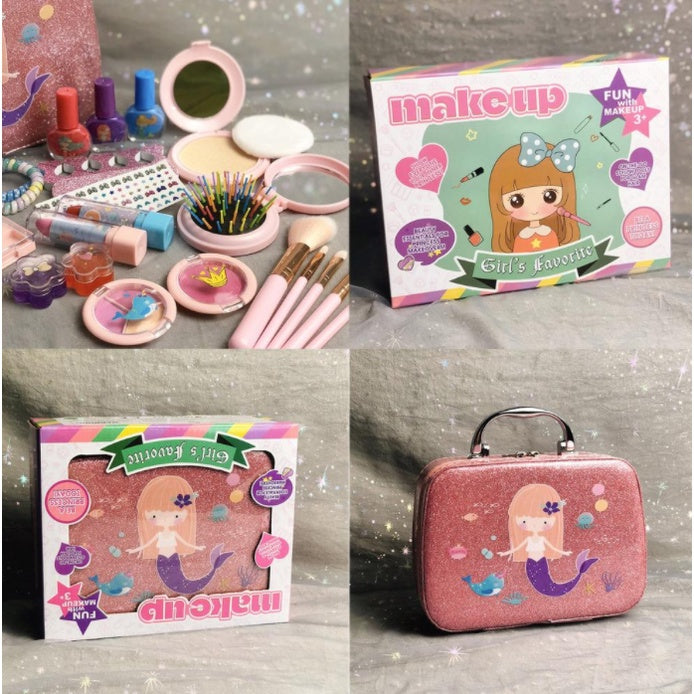 4、Convenient to Store: The makeup box can store all cosmetic bags, which is convenient for storage and carrying. Girls can take cute makeup toys to participate in parties, princess dressing, parent-child games, early education classes and other activities.
