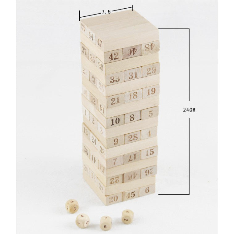 51 pieces Number Wooden Tower Stacking Game | Building Blocks Toy Domino Stacker Educational Stack Game