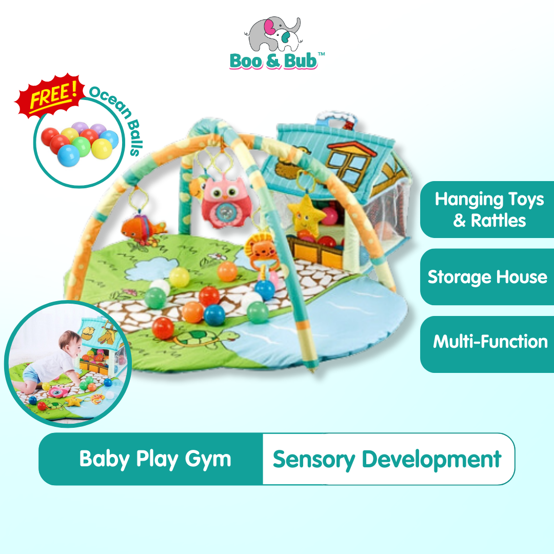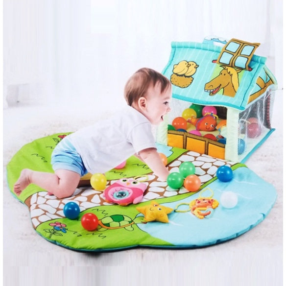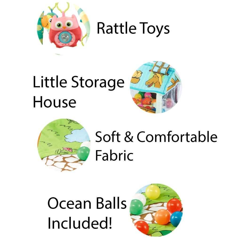 •Various hanging toys and colorful balls promote their hand-eye coordination and neck movement.