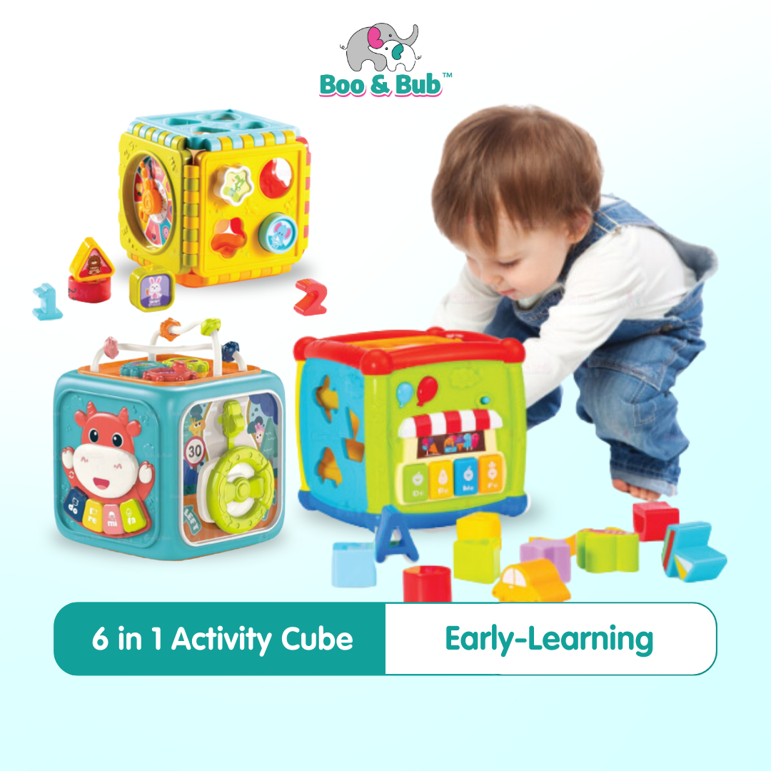 Boo&Bub Baby Activity Cube | 6 Sided Musical Shape Sorting Matching Box Cube Toy