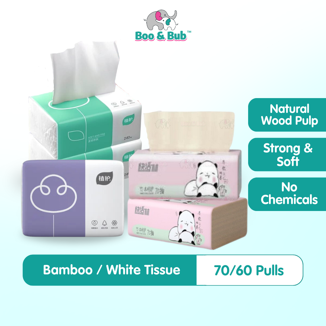3ply 70 sheets Bamboo Tissue | Soft Facial Tissue Paper Healthy Environmental Friendly Towel 纯竹浆抽纸