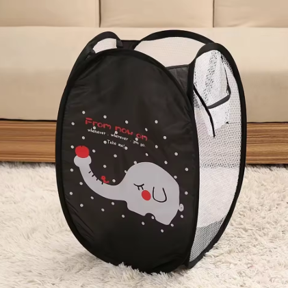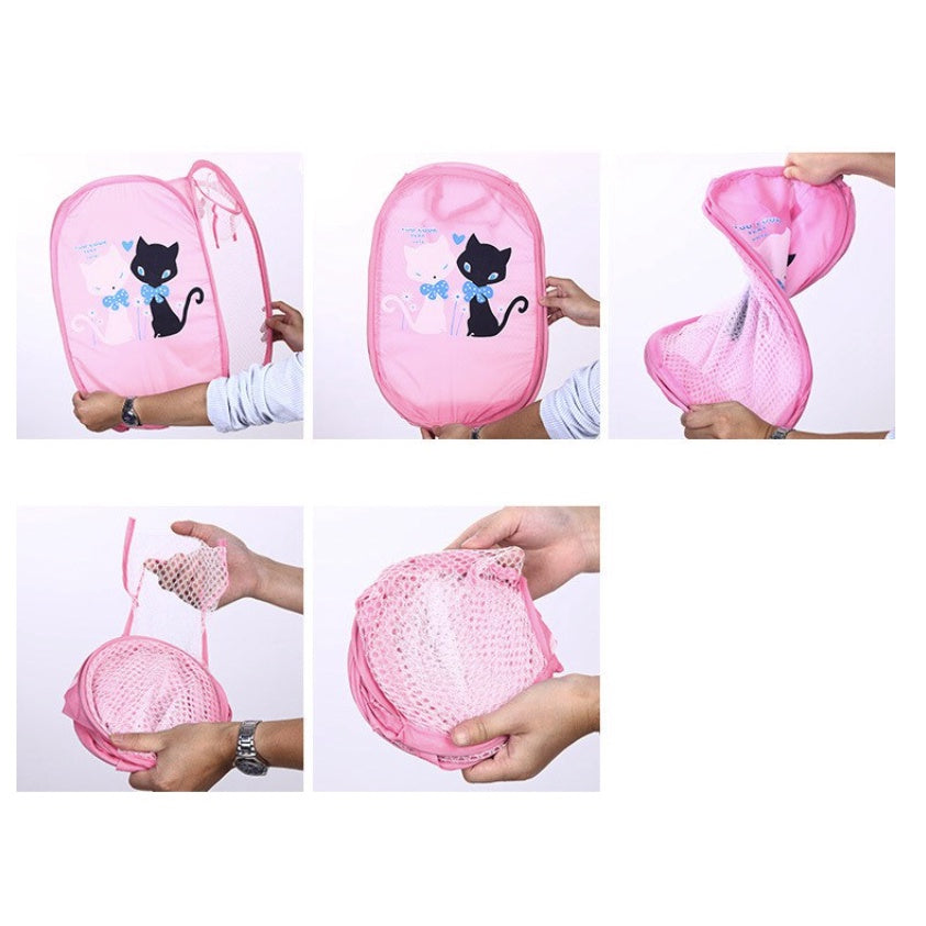Cartoon Foldable Laundry Basket | Household Dirty Clothes Bag Light Mesh Color Net Laundry Sundries