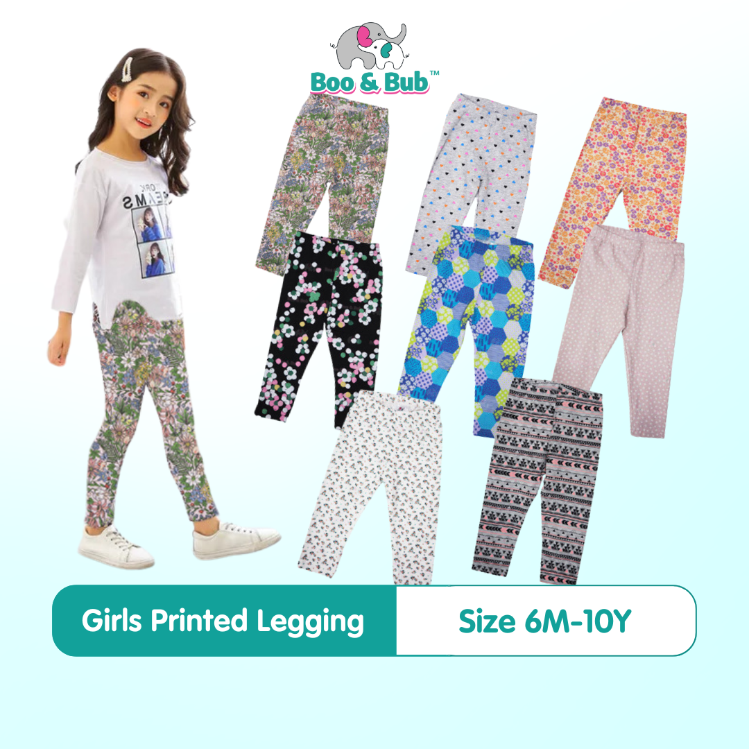Boo&Bub Assorted Girl Cotton Spandex Legging pants (6M-10Y) | Leggings Budak perempuan | girl long pant leggings