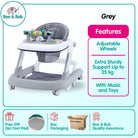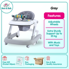 - The walker offers two ways to play: push it along the floor + sit and play.