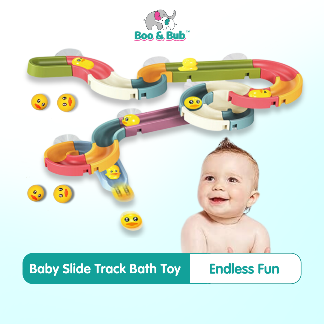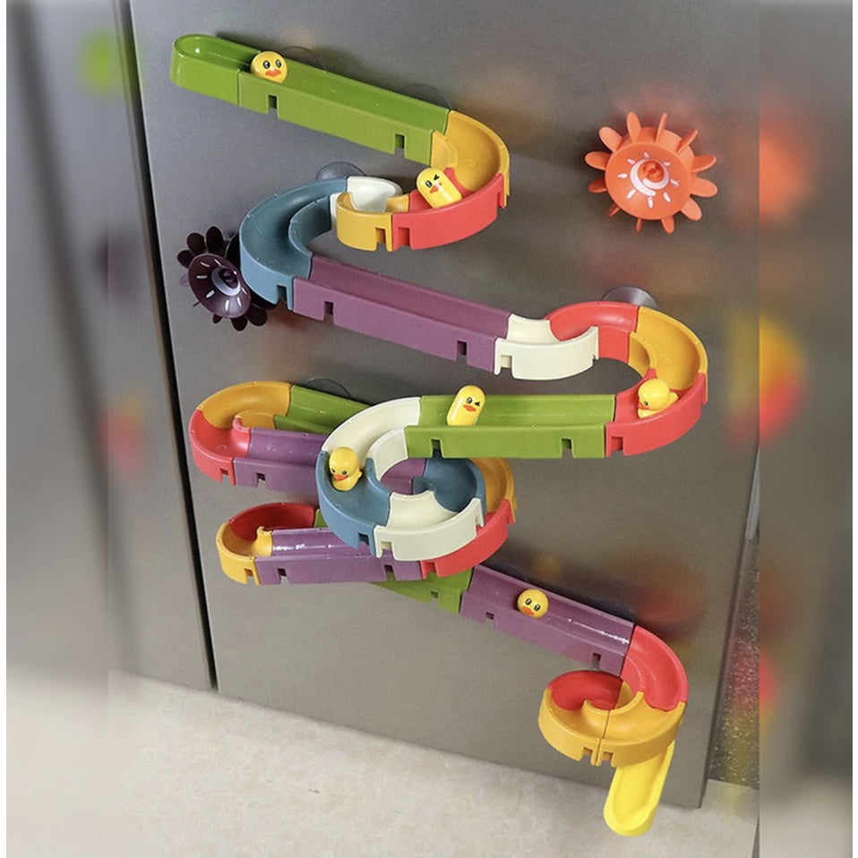 Baby Bath Slideway Toy | Wall Suction Cup Assembling Tracks Little Yellow Duck Toy | Baby Bathing Water Toy