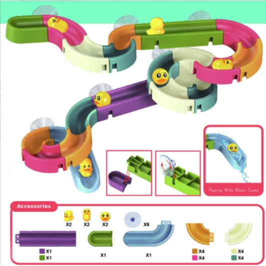 -Bath Toys: This fun bath toy set is equipped with various building blocks, balls and duck toys, which your children can stack at will to enhance their entertainment and imagination. In the game scene, props and educational toys will make babies imaginative and innovative.