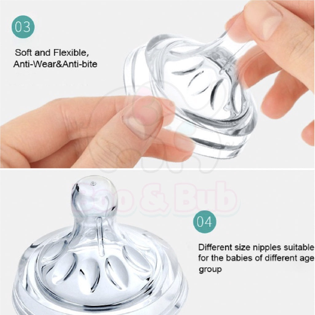 convex lines design so that it make the baby more comfortable when drinking. The teat is simulate
