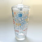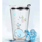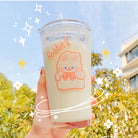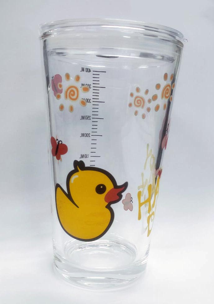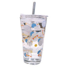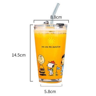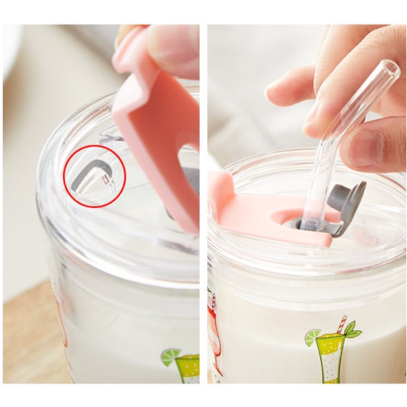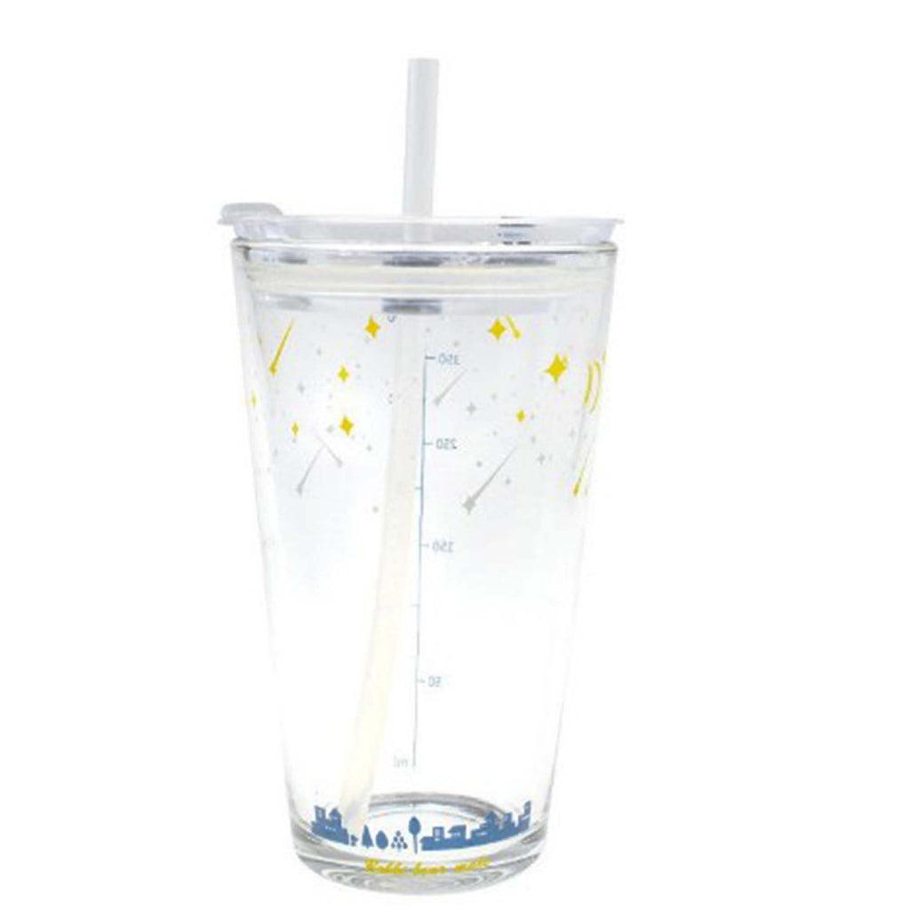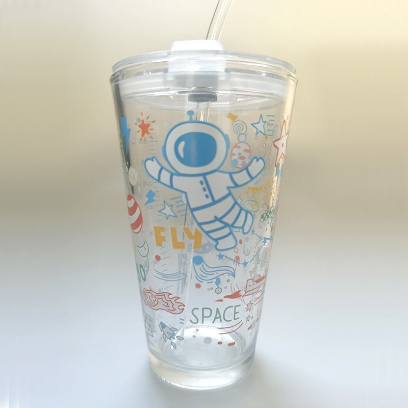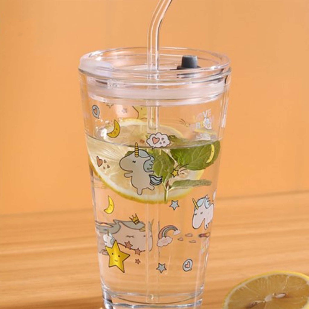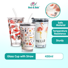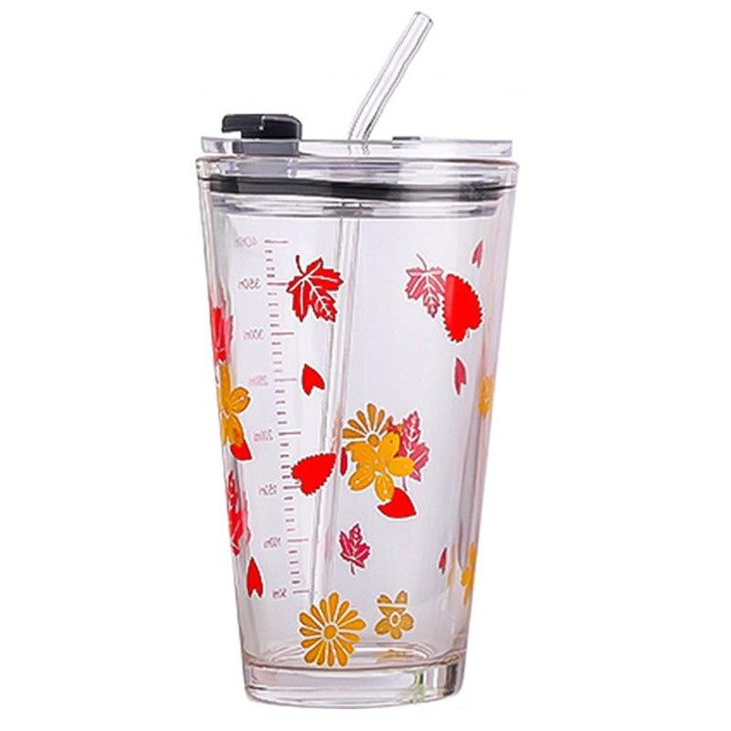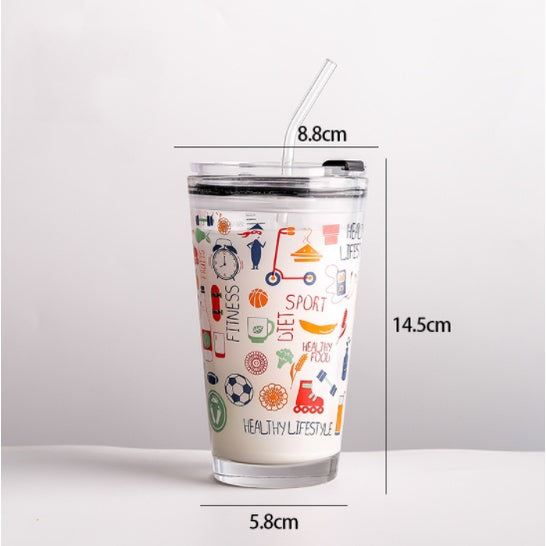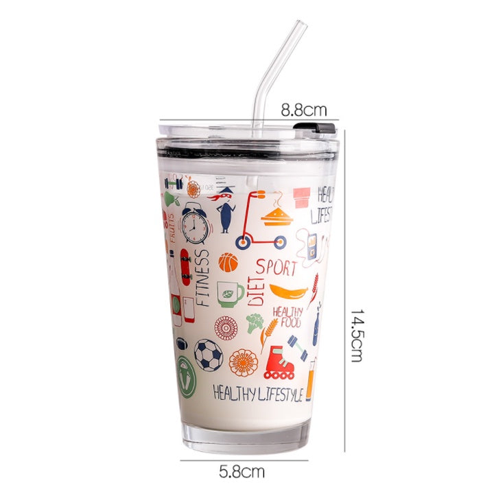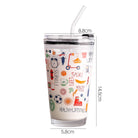 450ML Glass Cup | Juice Straw Mug with Scale Transparent Graffiti Style Kid Gift Portable Milk Drink Water Bottle