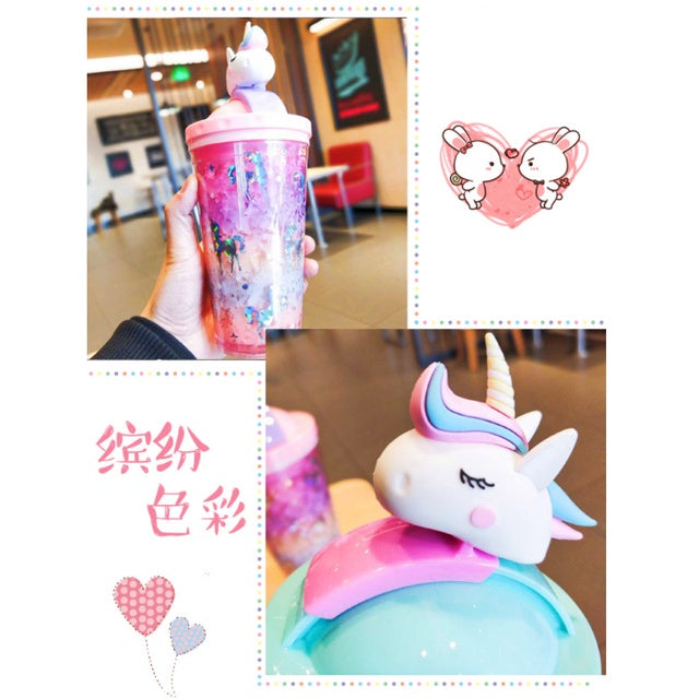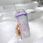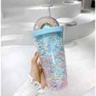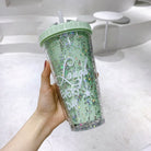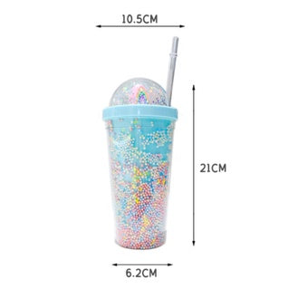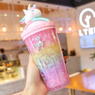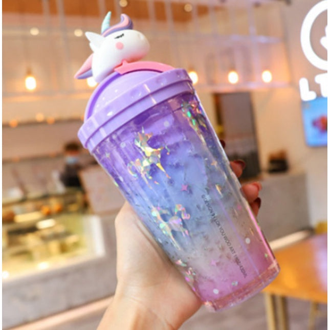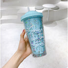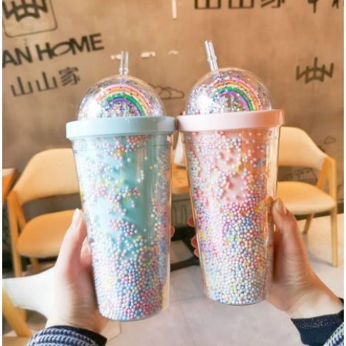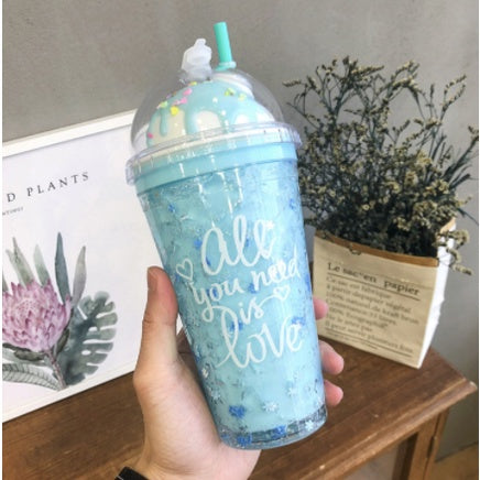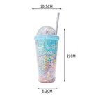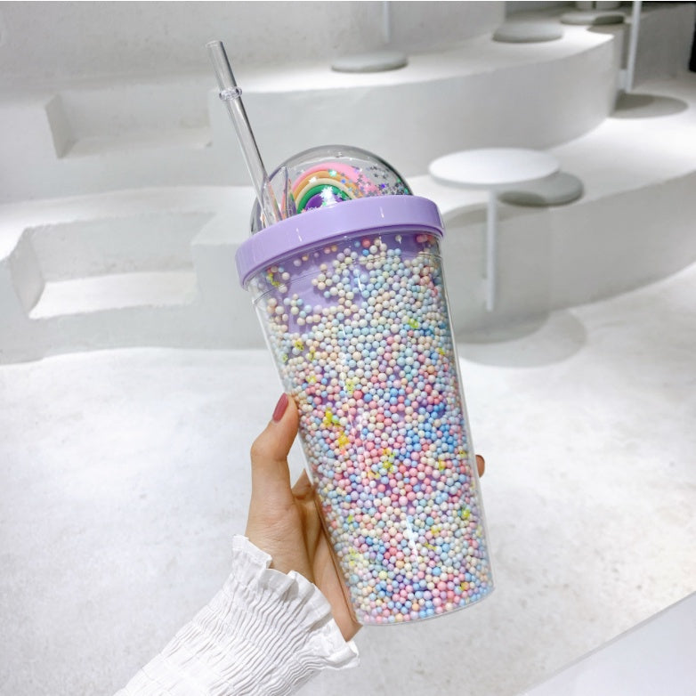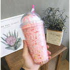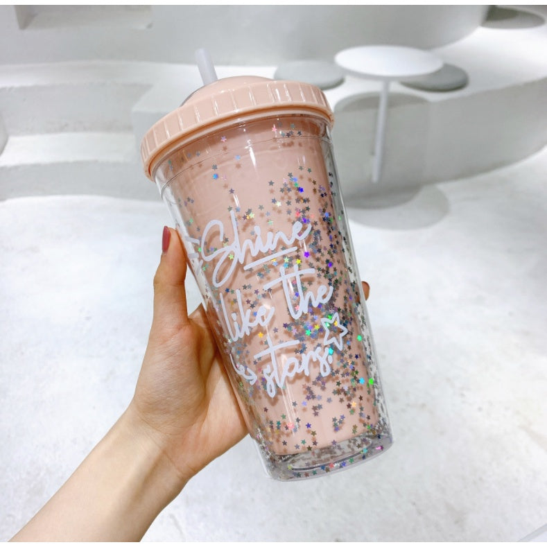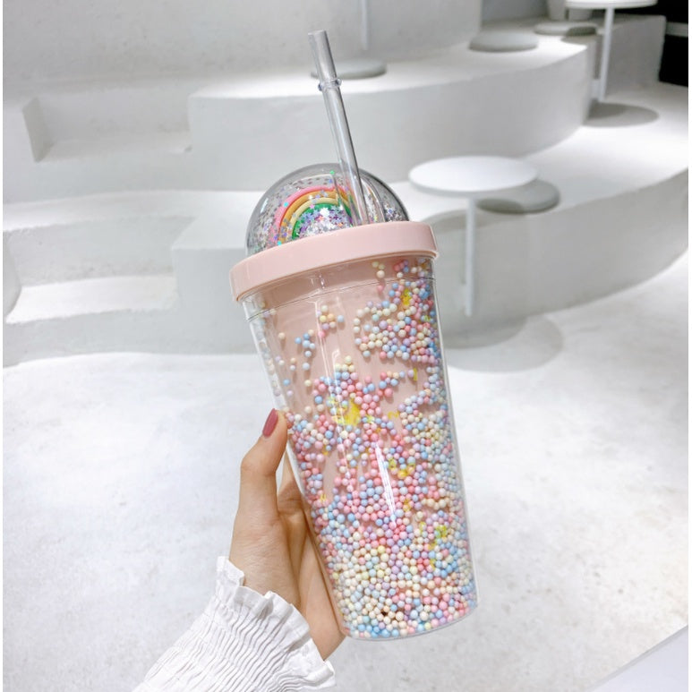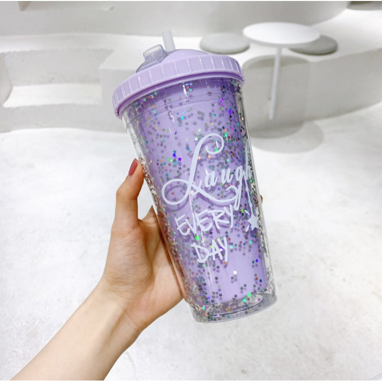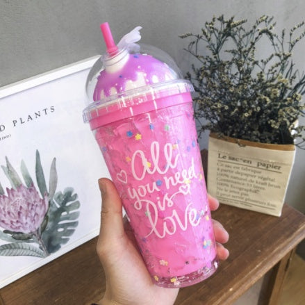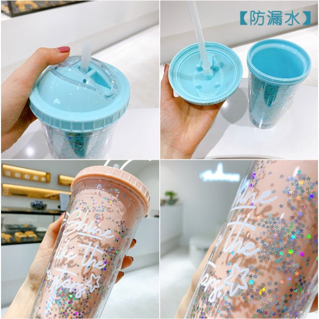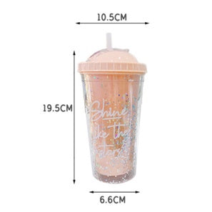 Double Layer Plastic Tumbler With Straw | Water Cup Plastic BPA Free Cute Girl Water Bottle For Juice Milk