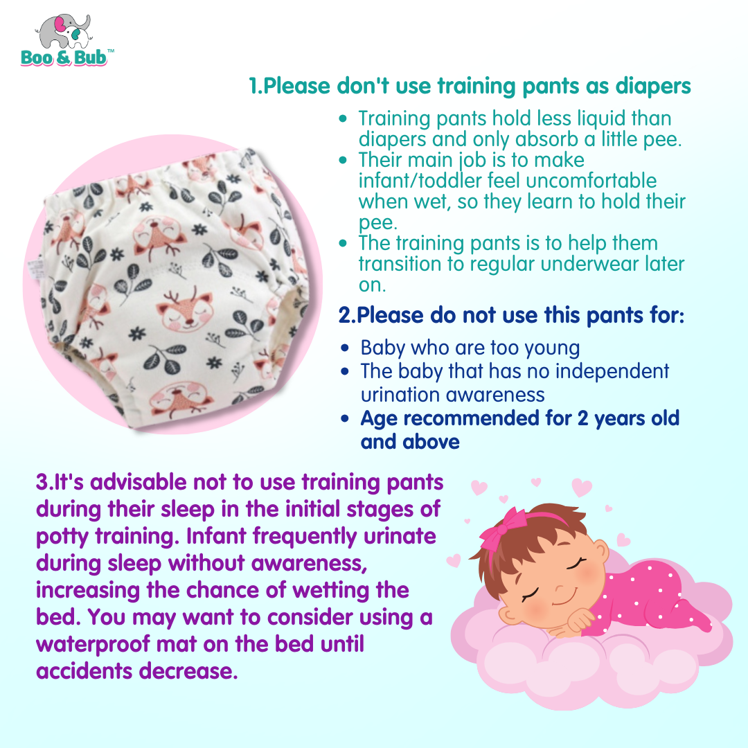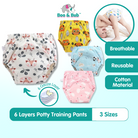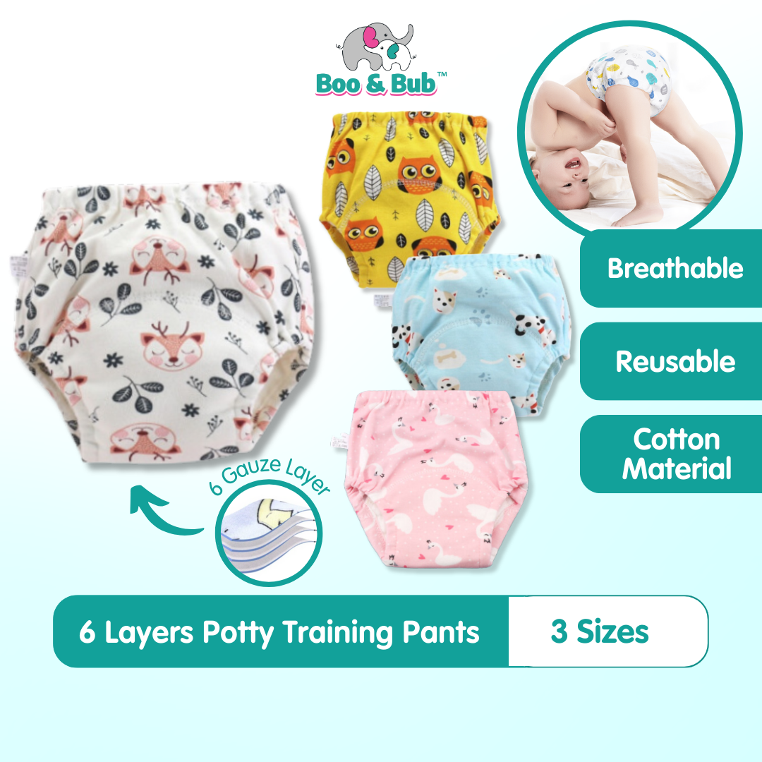 6 Layer - Boo&Bub Waterproof Reusable Cotton Baby Training Pant | Infant Shorts Underwear Cloth Diaper Nappies Panties