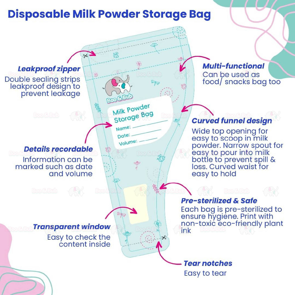 Boo&Bub Disposable Milk Powder Storage Bag | Baby Formula Milk Storage Bag | Plastik Simpanan Susu Tepung
