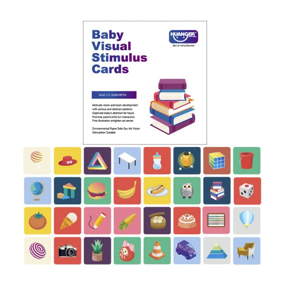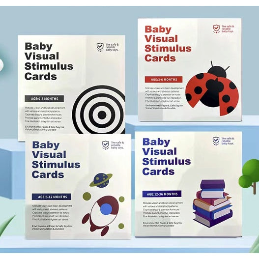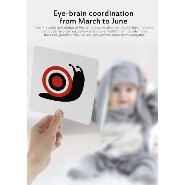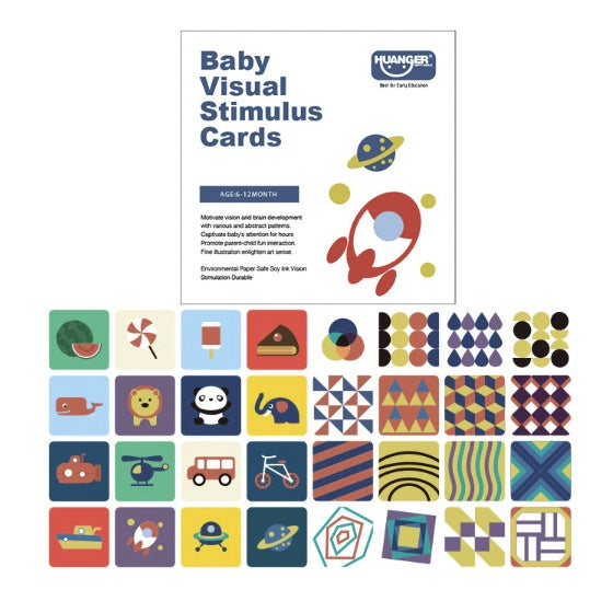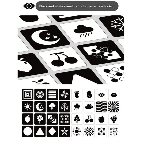 The double-sided and oversized cards are made of thick cardboard and present contrasting illustrations based on the baby's vision.