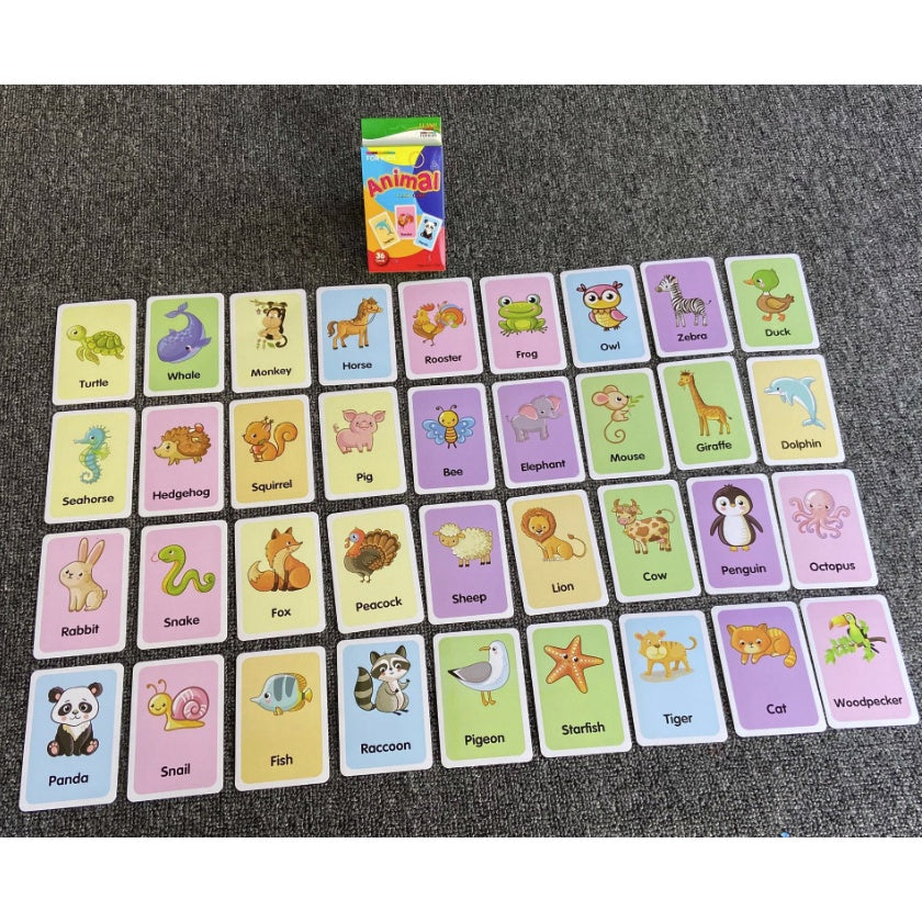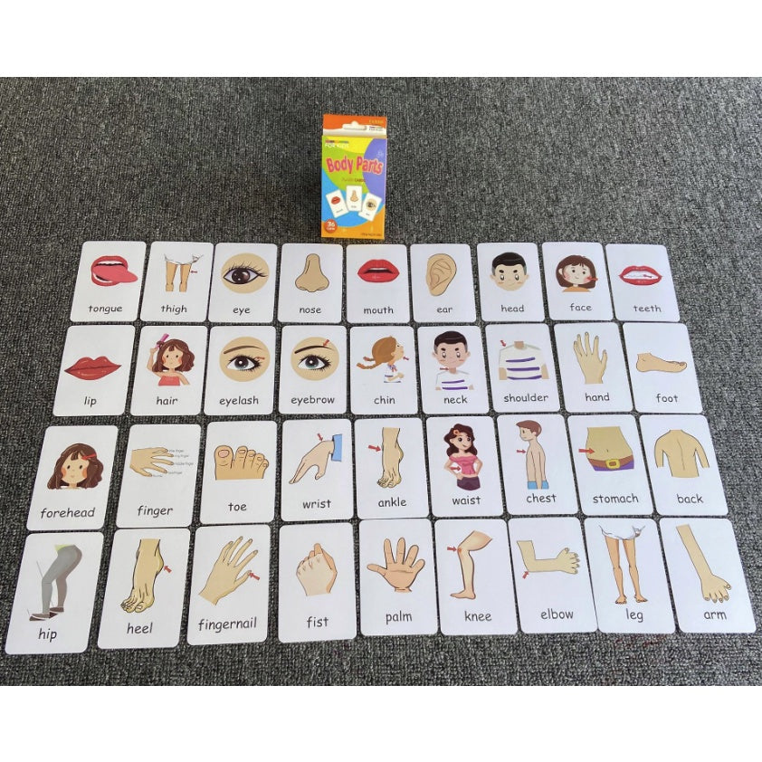 36pcs Double Side Big Flash Cards | Baby Children Cognition Body Parts Animal Fruits Flashcards Montessori