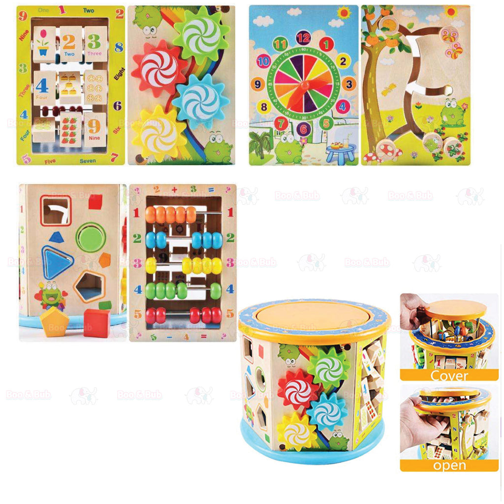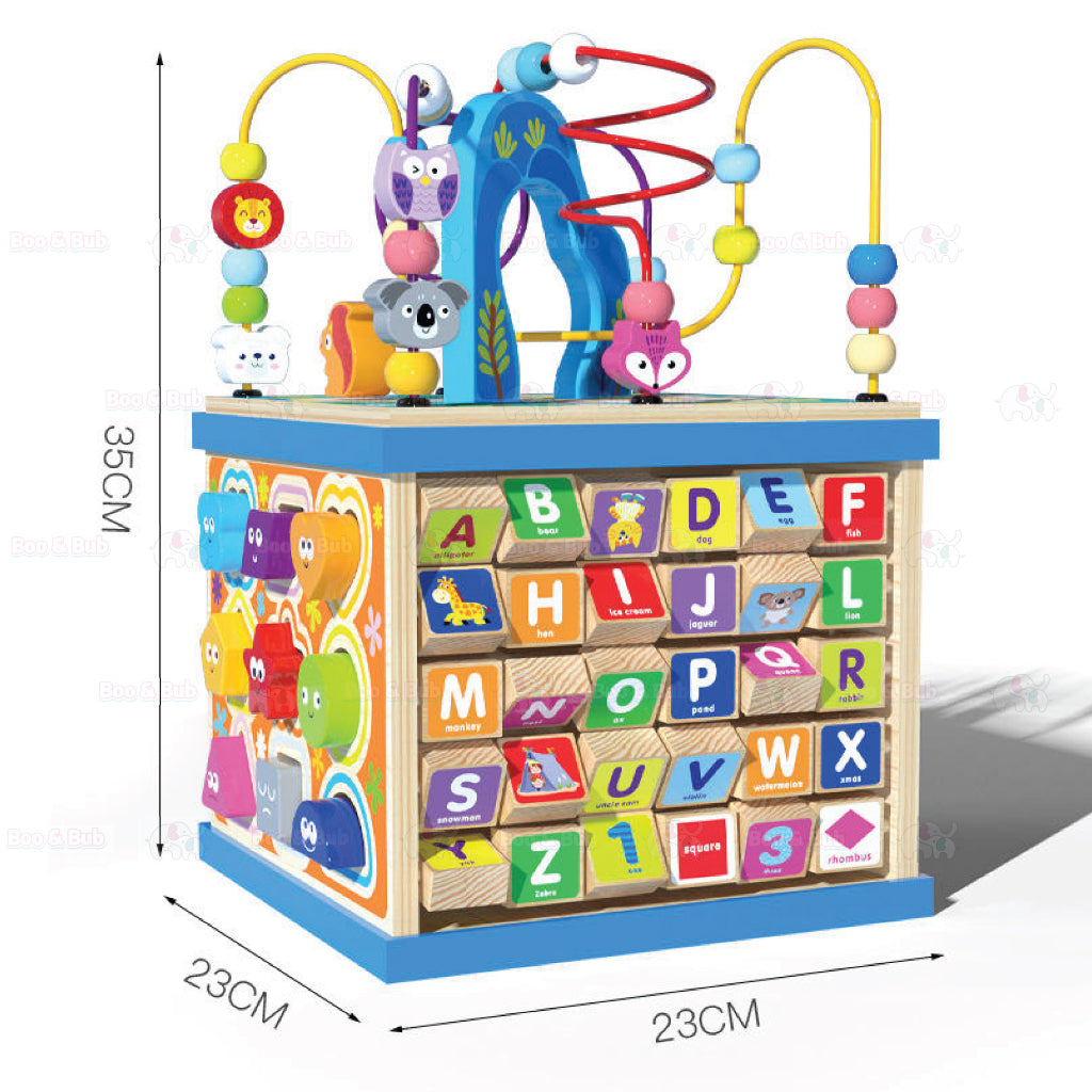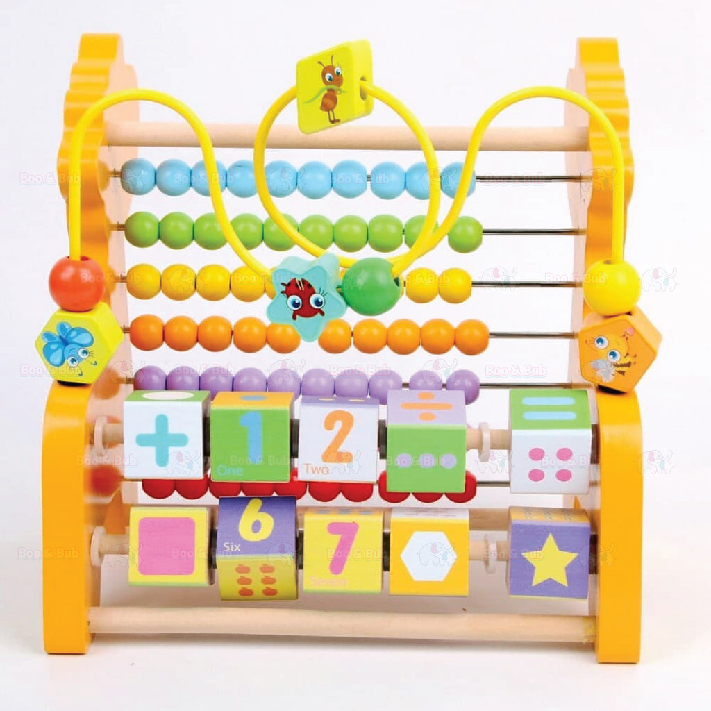 Boo&Bub Montessori Educational Toy Wooden 8 in 1 Multipurpose Activity Cube Center Toys | Abacus Wooden Beads