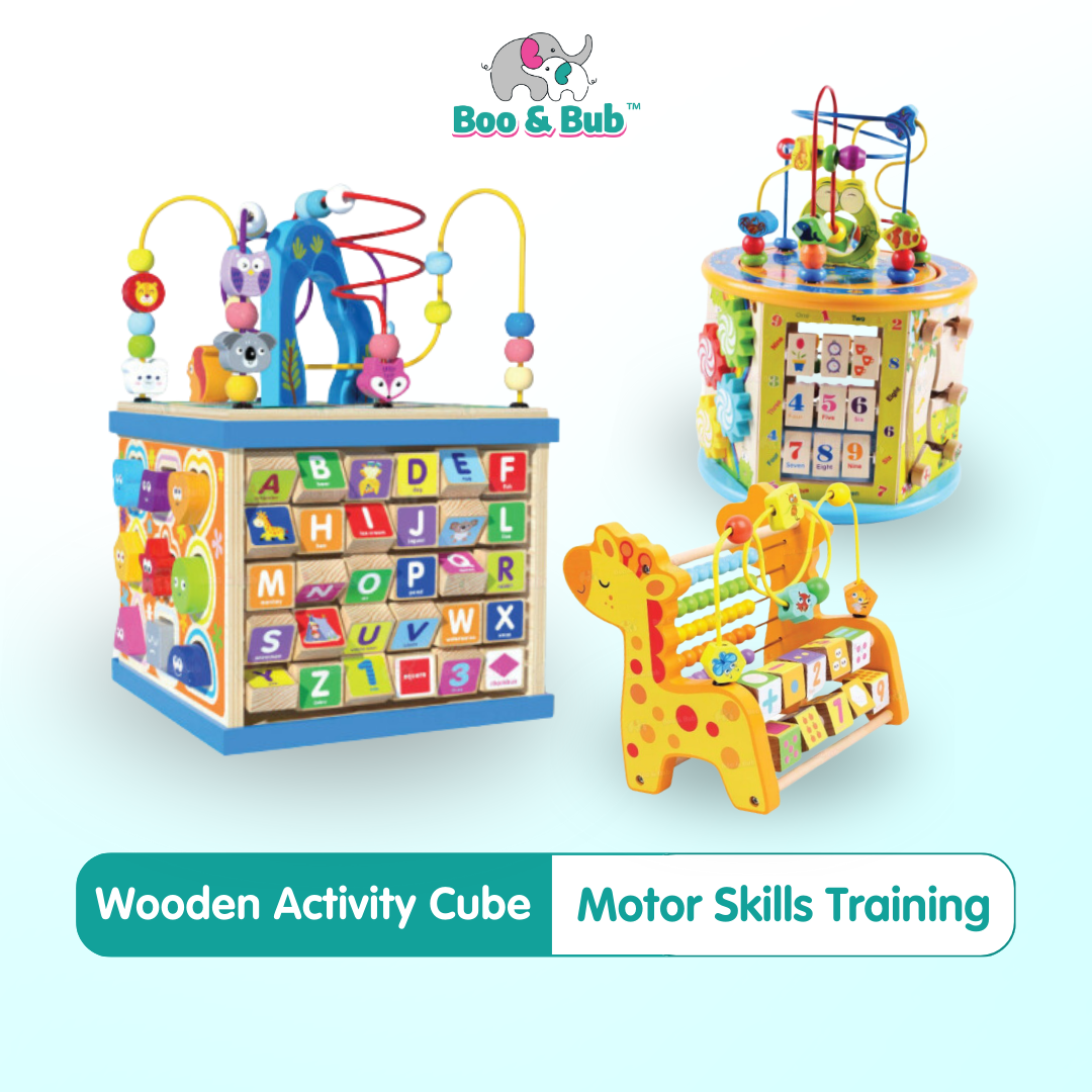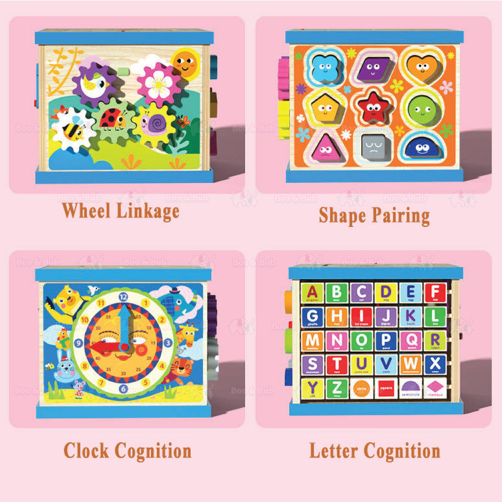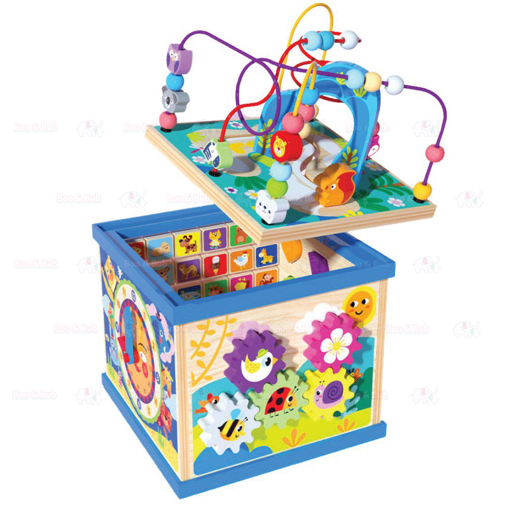Boo&Bub Montessori Educational Toy Wooden 8 in 1 Multipurpose Activity Cube Center Toys | Abacus Wooden Beads