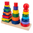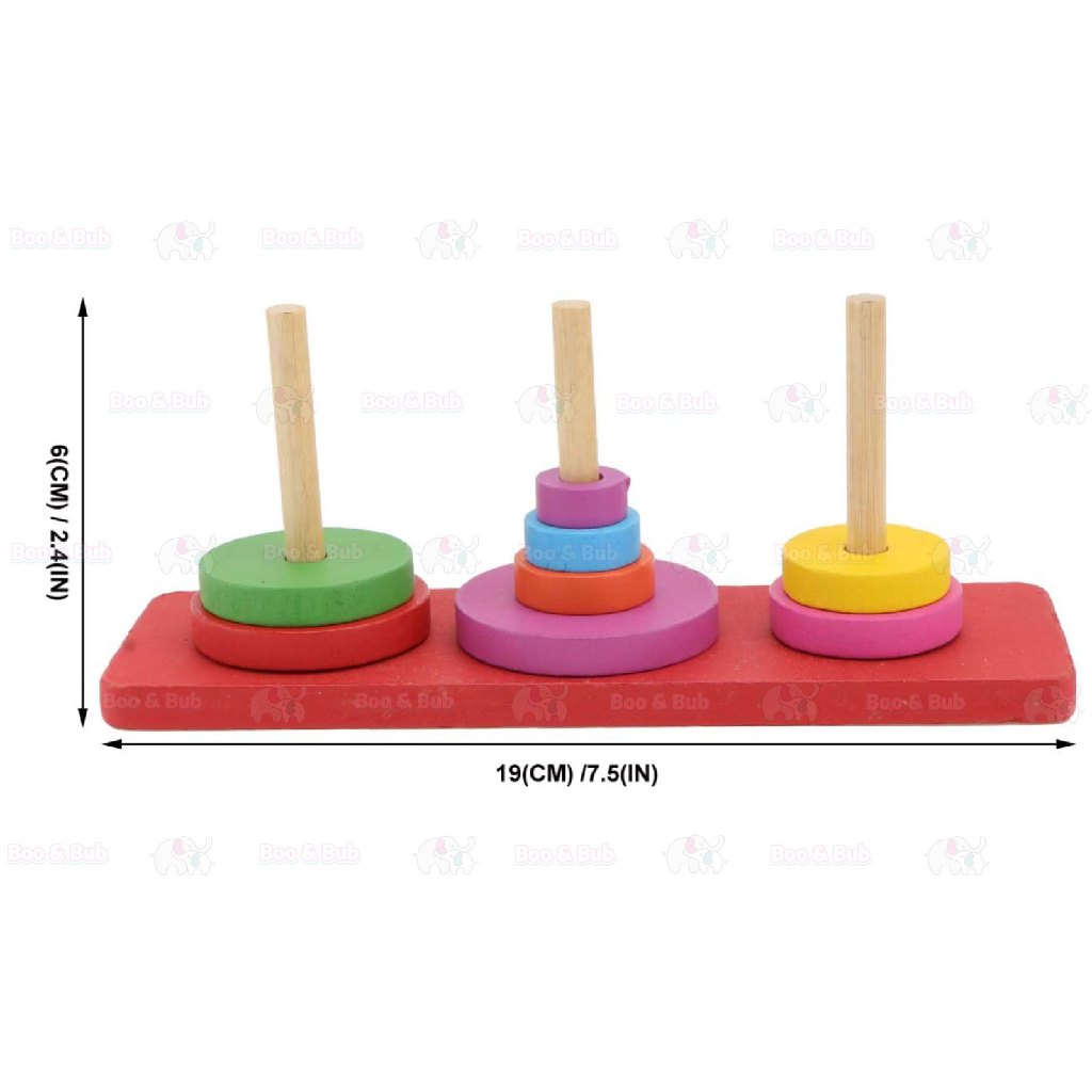 Boo&Bub Wooden Stacking Toys Rainbow stacking Ring Stacker Wooden Tower Hanoi Tower Montessori toys stacking block