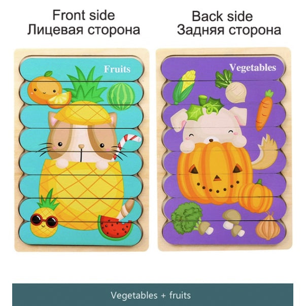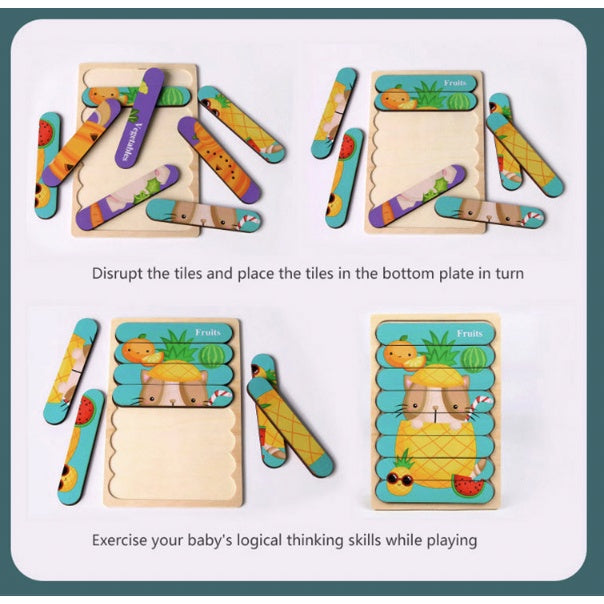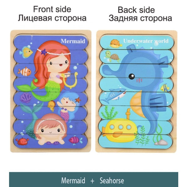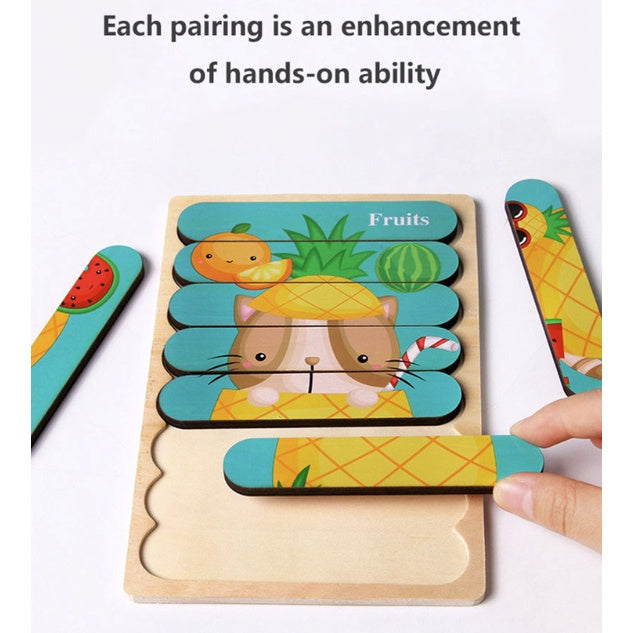 Double Sided Strip 3D Puzzles | Baby Toy Wooden Montessori Materials Educational Toys For Children Kid Baby