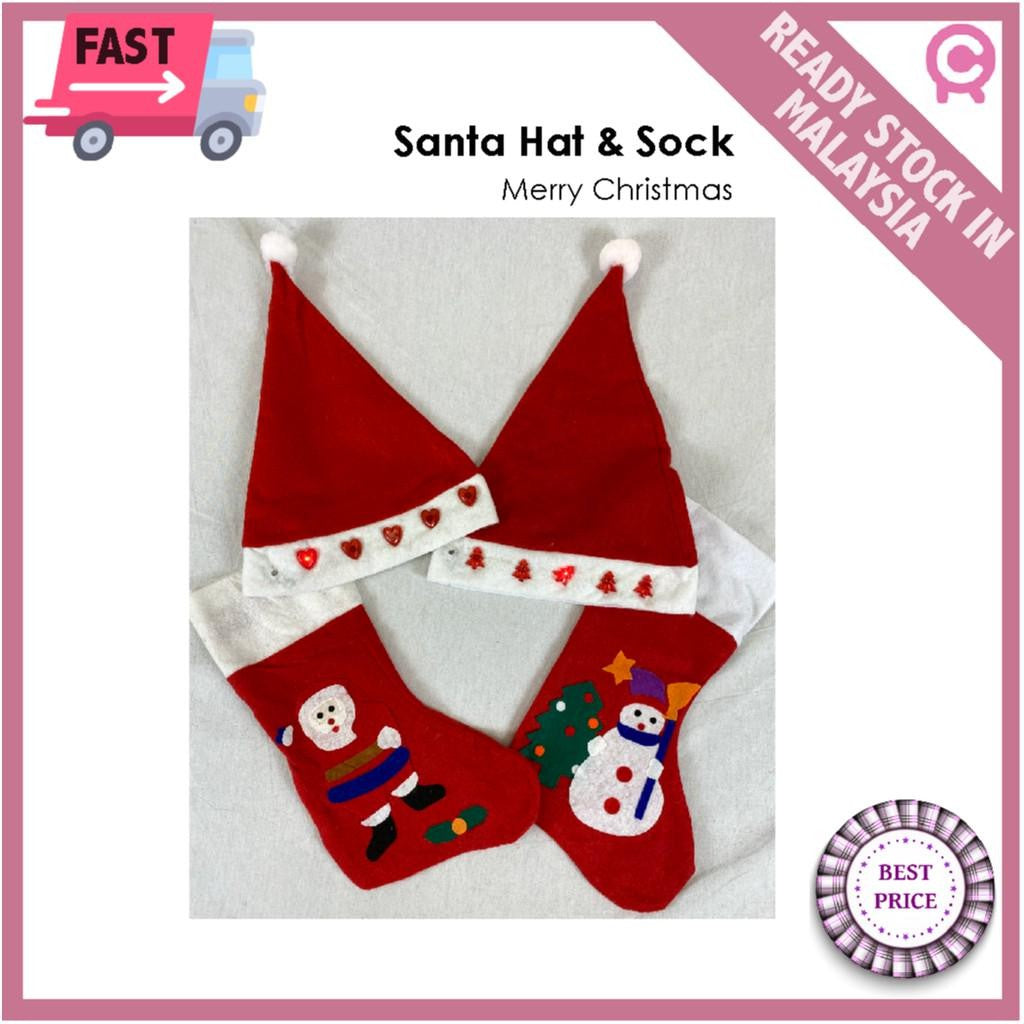 Christmas Santa LED Flashing Hat Socks For Adults Kids Children Santa Xmas