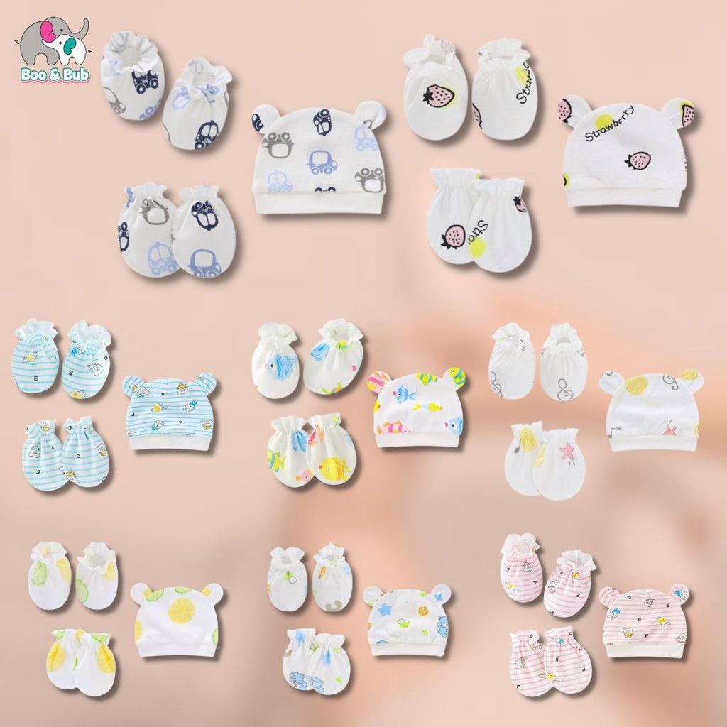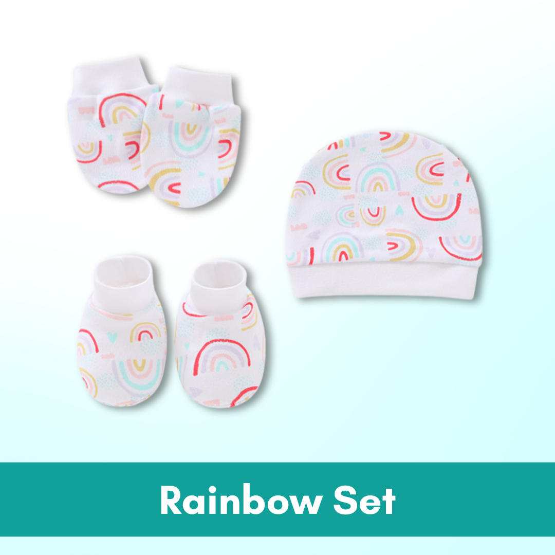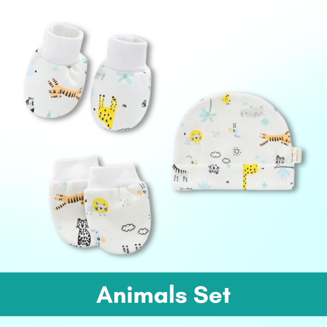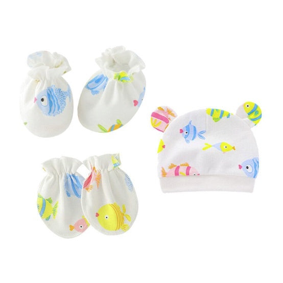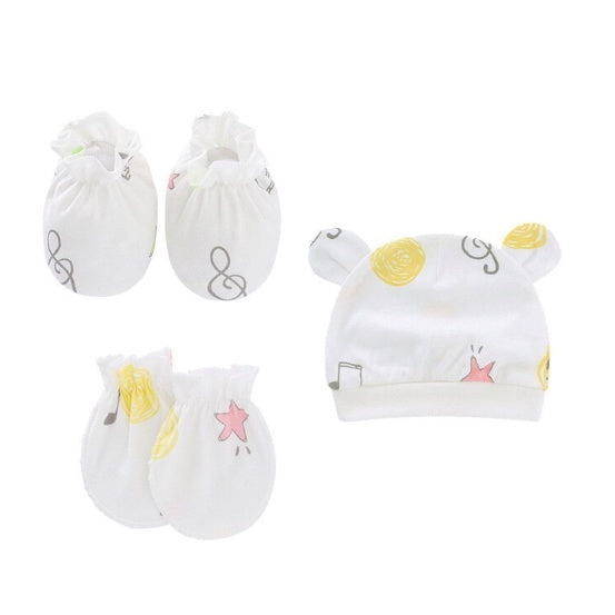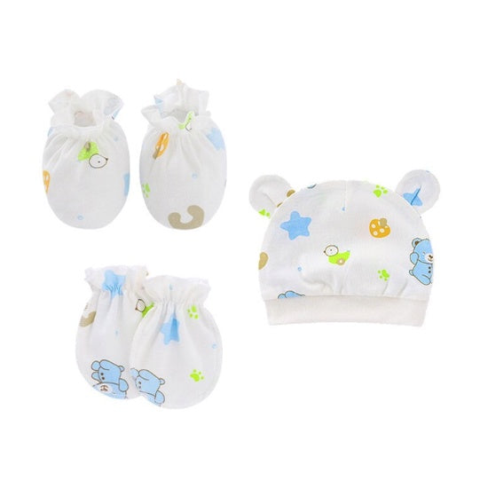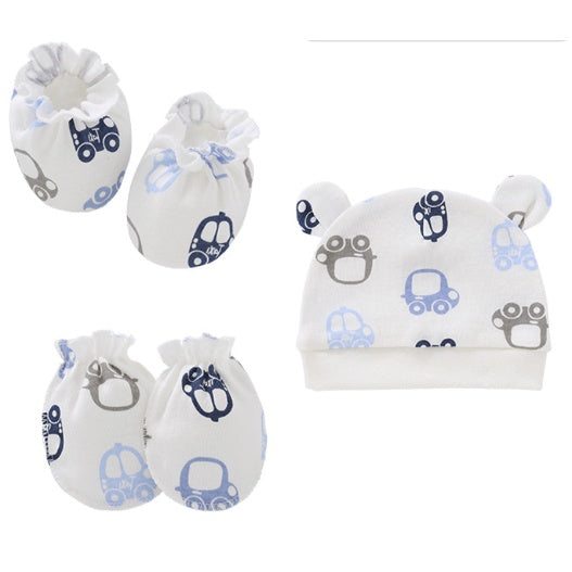 Set of 3 Newborn Cartoon Hat Gloves Socks Set for Baby Boy&Girl | Soft Cotton Booties Mittens