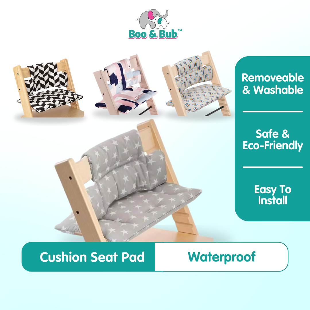 Boo&Bub Washable Waterproof Cushion seat pad Nordic Style Wooden Highchair Breathable Soft & Comfortable high chair