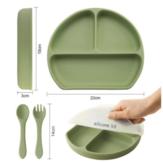Baby Silicone Dining Set | Suction Plate BPA Free Microwavable Bowl Food Grade Training Dinning Tableware