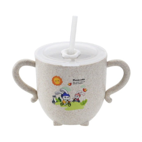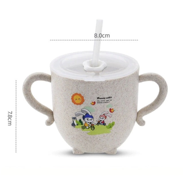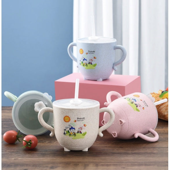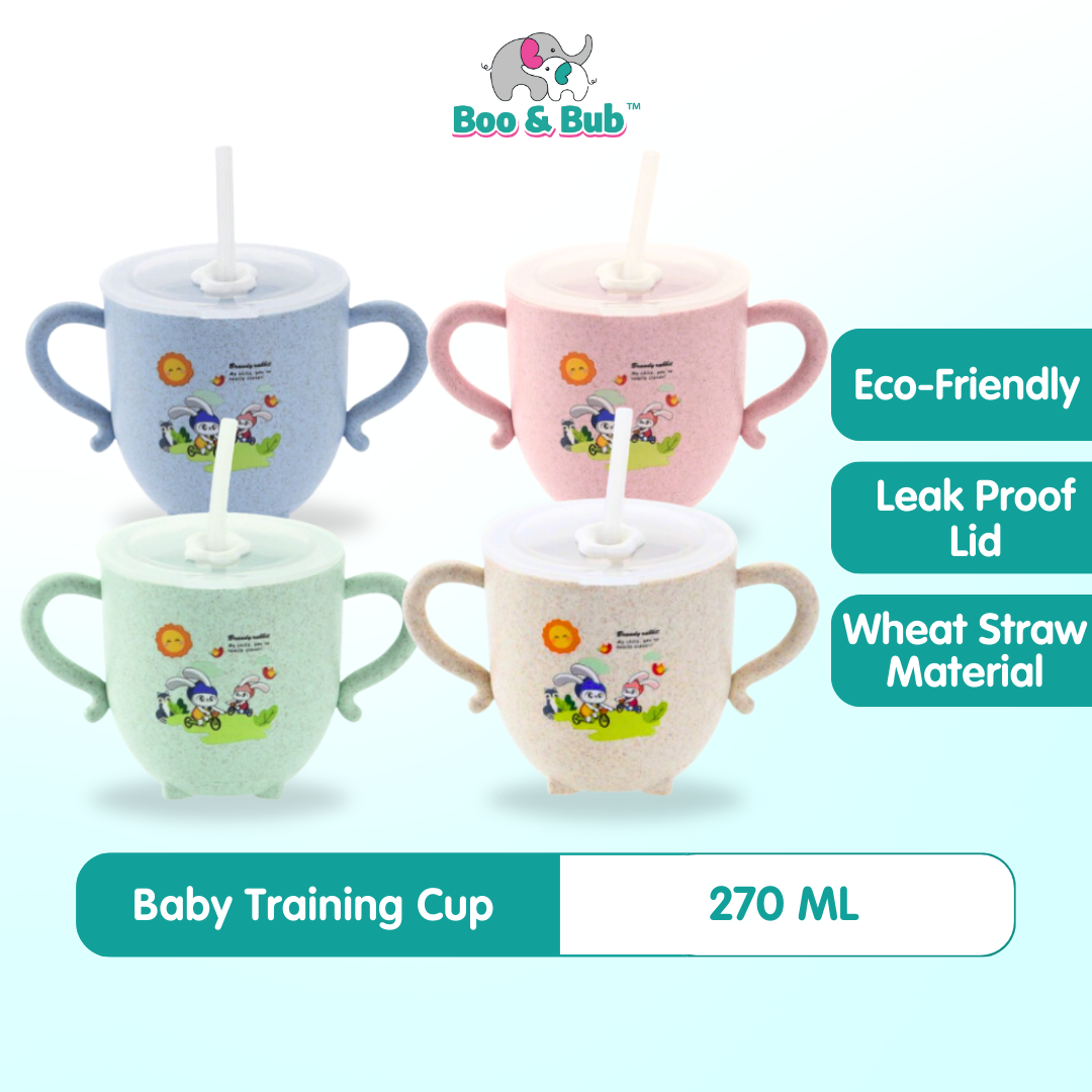 Boo&Bub Baby Training Wheat Straw water cup | Kid Feeding Training Milk Bottle double handles and lid leak-proof