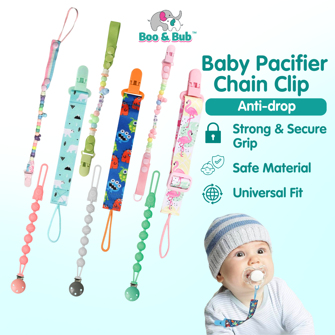 Boo&Bub Cute Cartoon Baby Pacifier Clip | Soother Holder Chain Nipple Holder for Baby Print Child Clips Gift kids