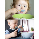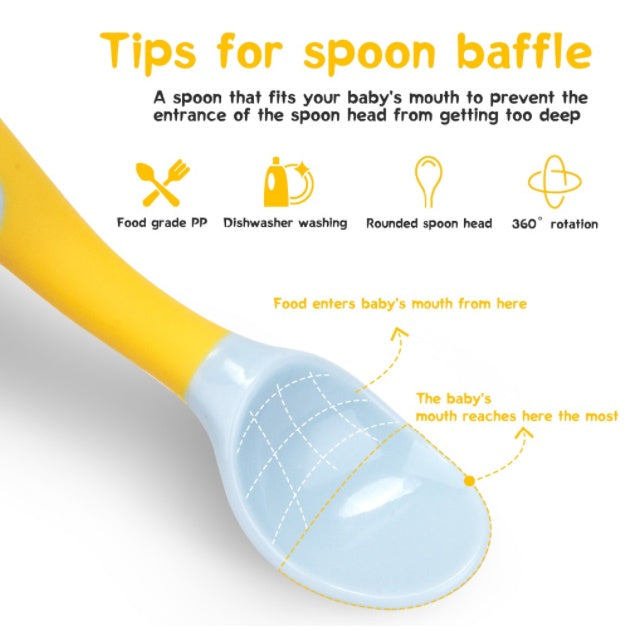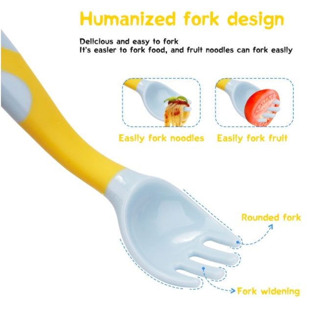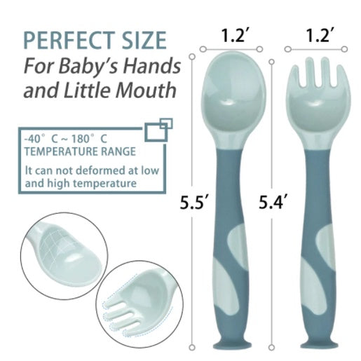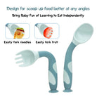 5.Utensils spoon fork set can be bent left or right or bent forward 90° without rebounding, easy for baby to eat independently.