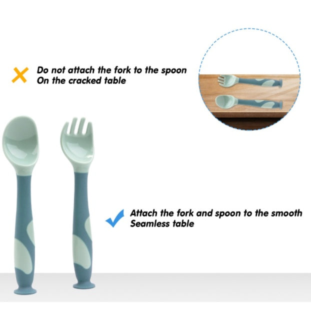 3.Made with very soft and flexible material that reduces any possibility of hurting your baby. With Special Designed Suction Cup, you can make the Spoon fork set stand on your high chair tray.