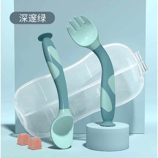 1.The training spoon fork set comes with storage case, you can put it into diaper bags and lunchboxes, then go out eating with it!