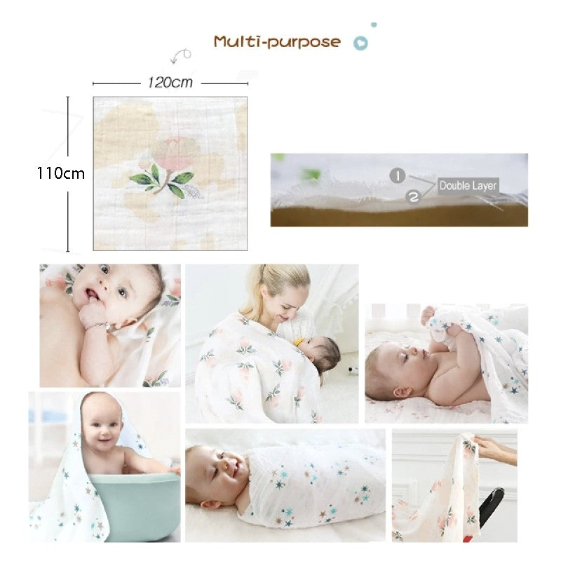 Newborn Baby Muslin Swaddle | Infant bamboo Soft Cloth Nursing Towel Blanket | Kain Lampin Kain Selimut Kain Bedung