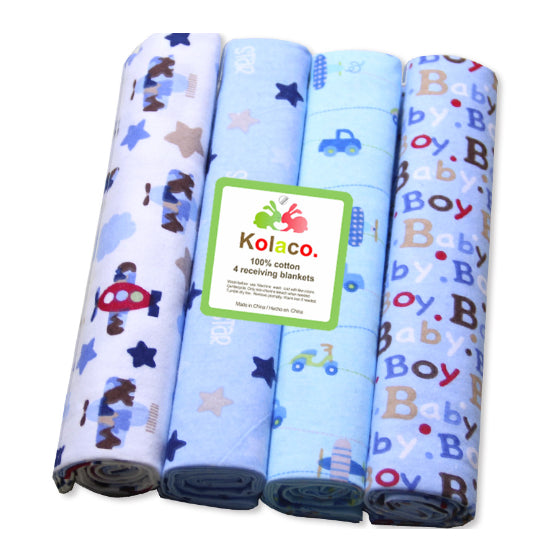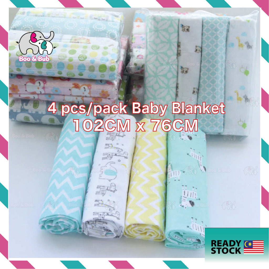 Boo&Bub 102 x 76 cm 4pcs/pack baby blankets | newborn crib sheets cot linen 100% cotton Flannel printing Muslin Diaper