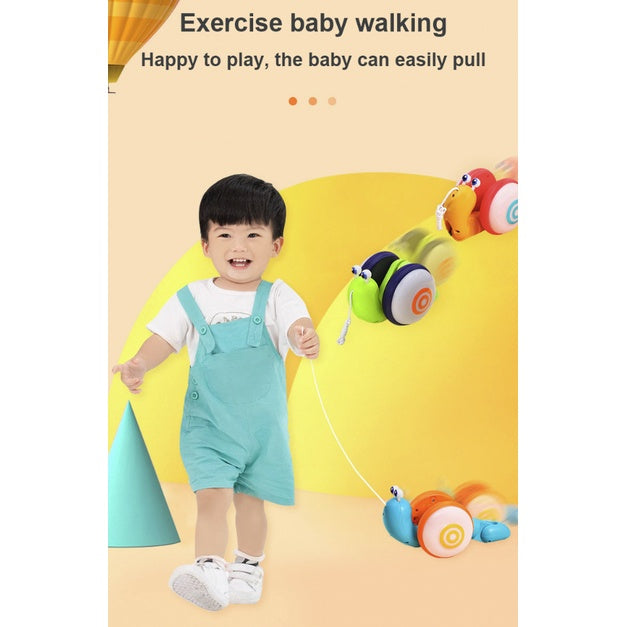 Pull String Cartoon Snail Car toy | Baby Learn to Crawl and Pull Toy Light and Music Early Education Toy