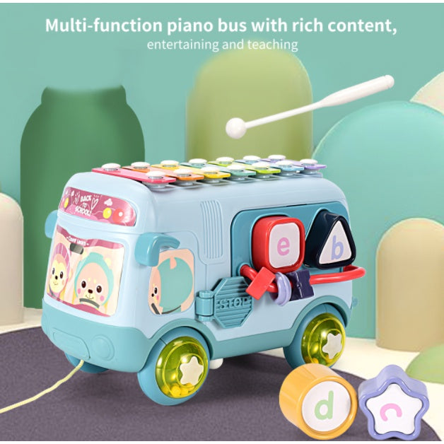 Xylophone Bus Toy | Beads Blocks Musical Instrument Baby Rattles Piano Toys Early Learning Montessori Educational