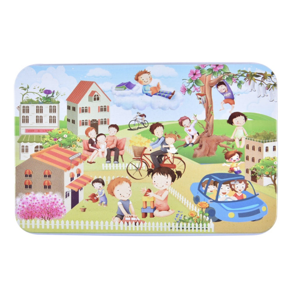 Wooden Learning Puzzles in Iron Box | Early Learning Educational Toy With Metal Box Kids Cognitive Puzzle