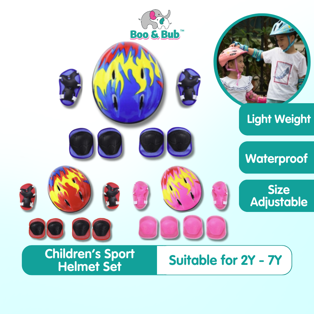 7PCS - Boo&Bub Children Sports Helmet Set | Bicycle Bike Scooter Skater Cap Safety Protection Gear Outdoor game Cap
