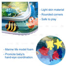 2.EASY TO ASSEMBLE tummy time toy mat is ready in no time. Simply inflate it, fill with water, and your baby is ready for tactile and visual fun. The bright and colorful foam toys move around in the water, stimulating your baby's eye-hand coordination while encouraging them to lift up on their arms to catch the floating sea animals.