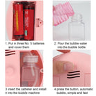 -Super Quiet Motor: Almost noiselessly streams out of wild soapy fun, so people can immerse themselves into a dreamy world without being disturbed.