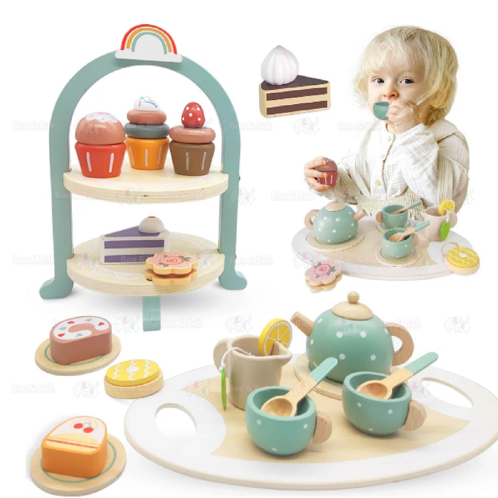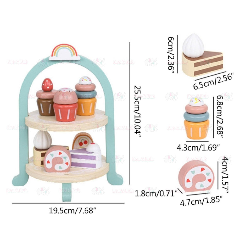 Boo&Bub Wooden dessert tea set | Pretend food cupcake set for preschool kids | Kids development toy birthday gift