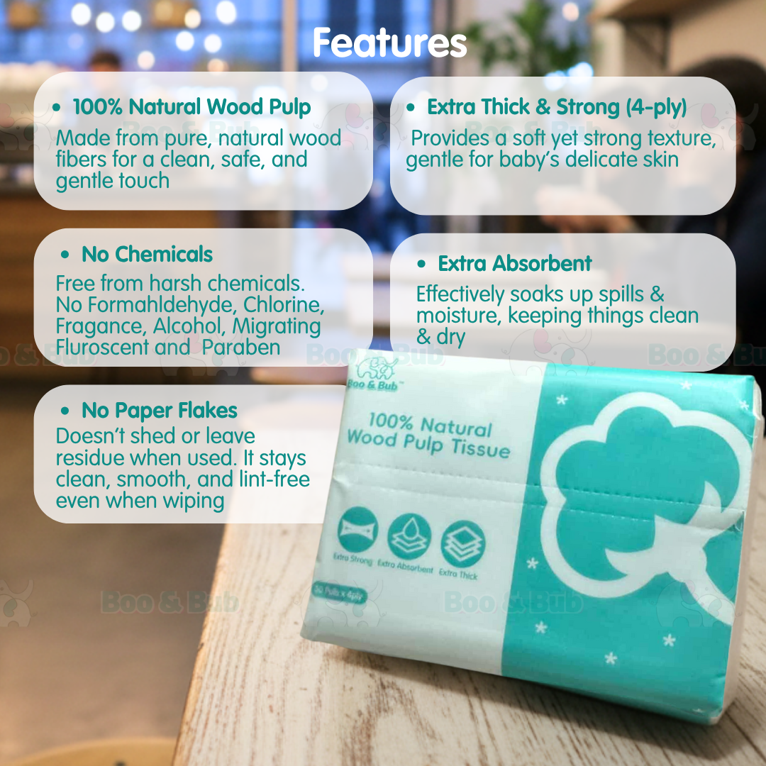 [30 Packs/ Carton] Boo&Bub Bamboo Tissue 3Ply 1 Carton Soft Facial Tissue tisu