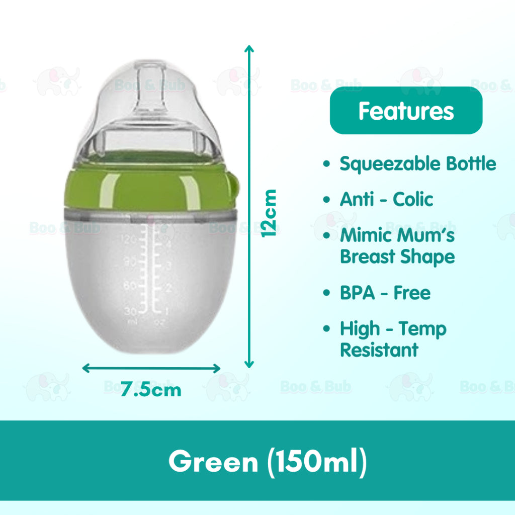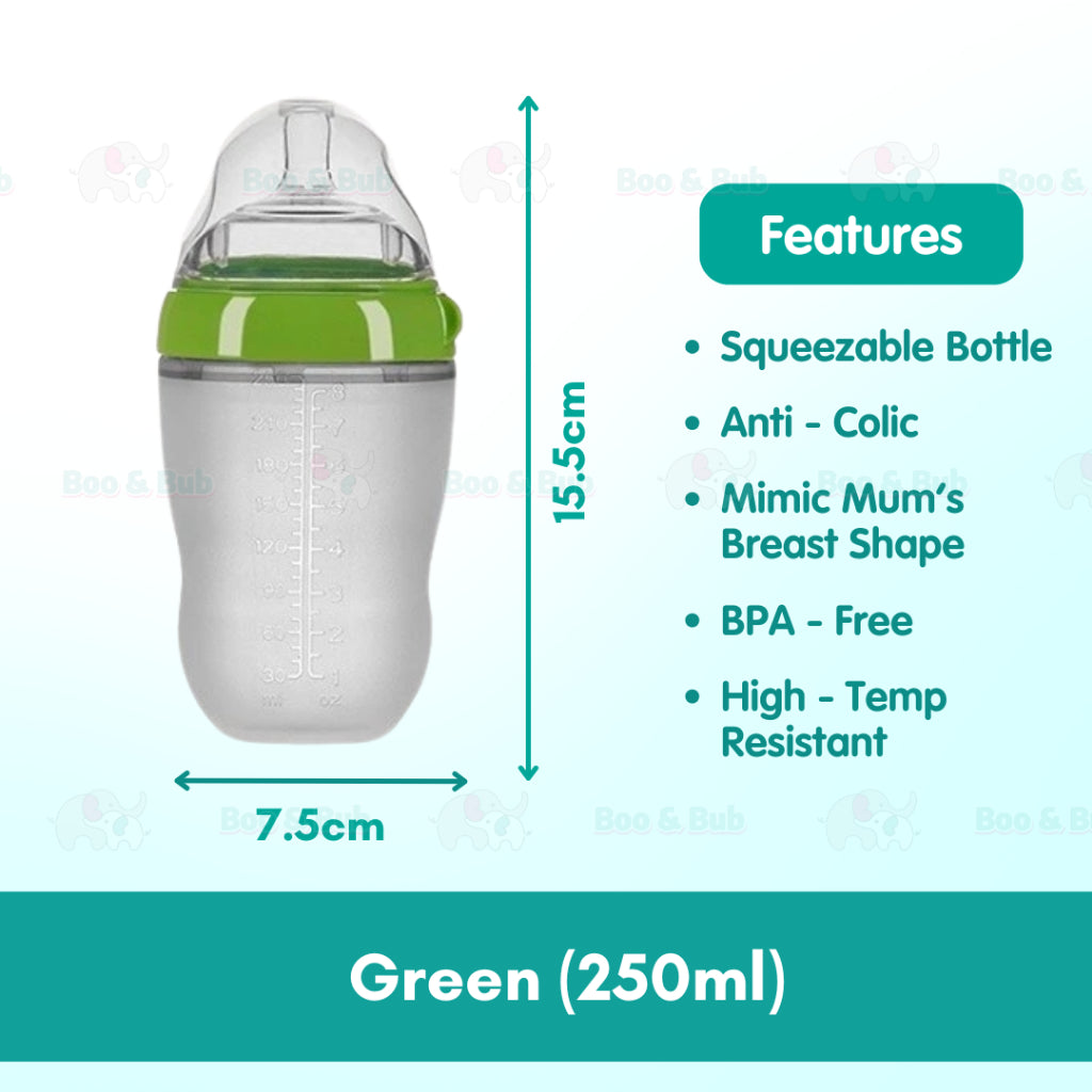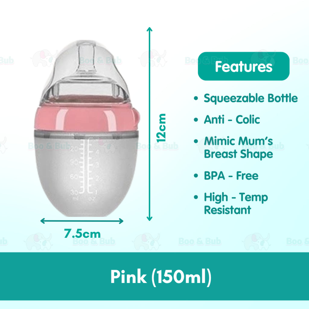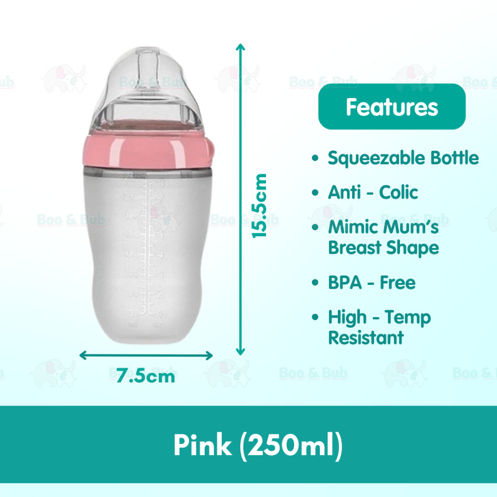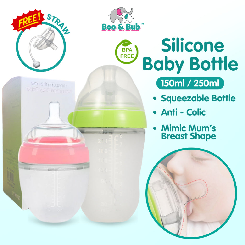 Boo&Bub Silicone Baby Bottle Wide-neck Anti-flatulence Bayi Botol Susu with straw BPA FREE