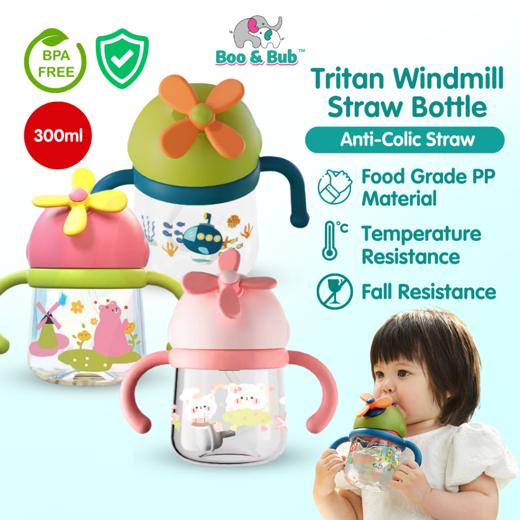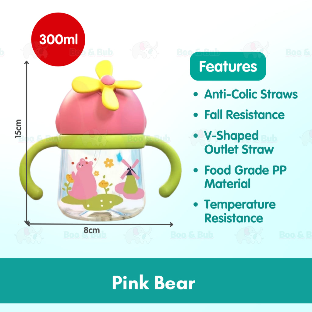 Boo&Bub 300ML Tritan Baby Bottle With Straw Botol Air Baby Botol Air Budak Kids Bottle With Straw Training Cup Cute